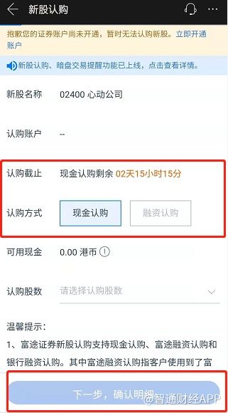 第三步:选择现金/融资融券进行申购,最后点击确认完成申购。