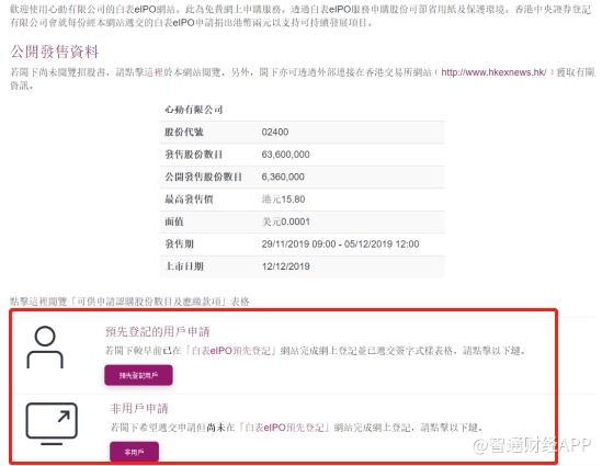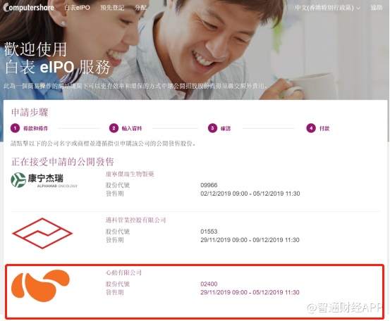 第二步:找到并点击心动有限公司IPO页面,按照步骤申请。(需要香港的身份证号码和社安号)