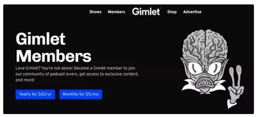 成立于 2014 年的 Gimlet Media 专注叙事内容的播客业务,代表作包括《Homecoming》、《StartUp》以及《Reply All》,其中《Homecoming》还被亚马逊改编成了系列电视剧。