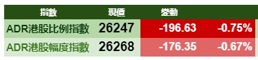 智通财经APP获悉,12月2日,美股道指挫268点,标指创近两个月最大跌幅,港股ADR指数表现疲软,按比例计算,收报26247点,跌196.63点或0.75%。大型蓝筹下跌为主,汇丰控股收报57.63元,较港收市跌0.77元;腾讯控股收报328.02元,较港收市跌4.98元。