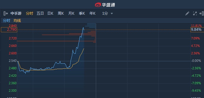 智通财经APP获悉,中手游(00302)早间公告称,携国宏嘉信及天使投资引导基金等设合伙投资战略新兴行业,盘中股价放量急升逾10%,截至11时36分,涨10.24%,报价2.8港元,成交额4650万。