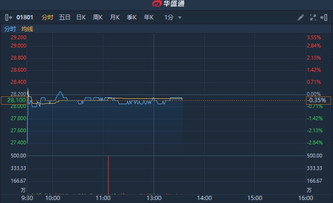 港股异动 | 盘中现一宗大手成交共涉资1.41亿 信达生物-B(01801)现跌0.18%