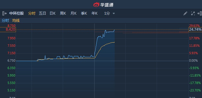 智通财经APP获悉,中环控股(01735)午后成交活跃,股价直线拉涨,截至13时37分,涨24.74%,报价8.42港元,成交额799.1万。