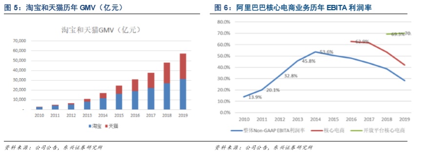 淘宝天猫已经验证了这种商业模型的可行性和高壁垒。截止 2019财年,阿里巴巴(BABA.US)中国零售平台年度活跃消费者数达到 6.5亿,GMV达到 5.7万亿,阿里巴巴开放平台的核心电商 EBITA利润率高达 69.3%。如此高的 EBITA利润率,充分证明了平台电商模式的高壁垒。