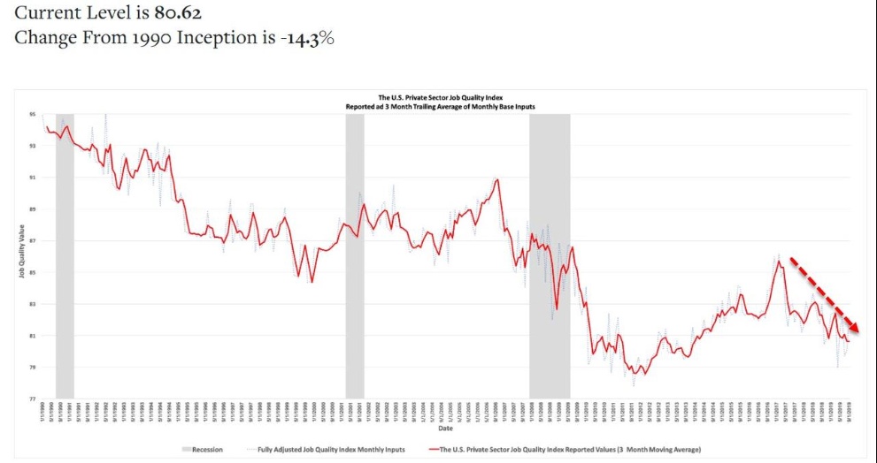 美国私营部门工作质量指数旨在提供有关数据,以区分高低薪,通常为兼职服务工作和高薪专业职位。
