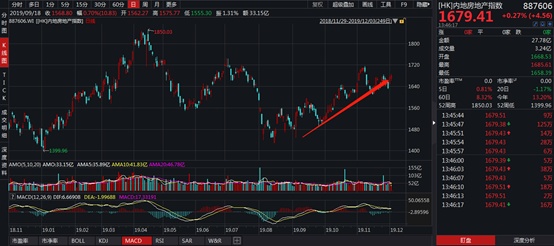 智通财经APP了解到,恒生指数12月3日经历一波深V走势后定格在了26391点,已经回调至10月初的水平,而此前一直因行业环境、资金等问题经历多次回调的内房股板块,其指数走势在10月初瞧瞧的回到了上行态势,12月3日较10月初的涨幅已逼近11%,与恒指冲高回落的走势形成反差。