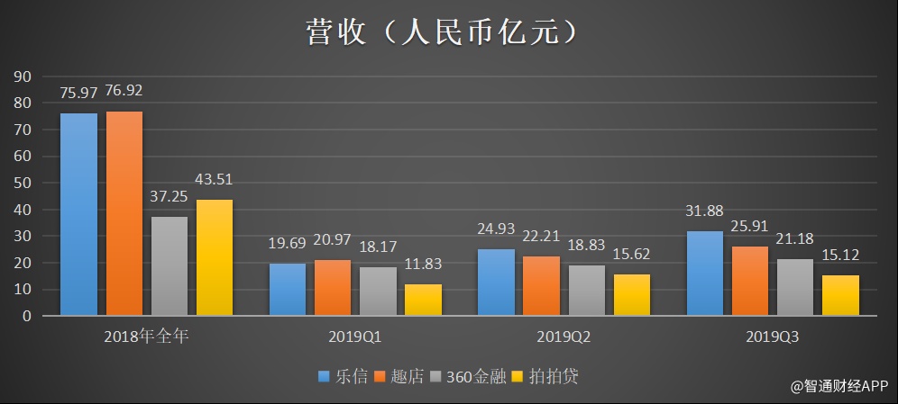 具体来看,三季度,乐信营收32亿元,同比增长72%;趣店营收25.9亿元,同比增长34.3%;拍拍贷(现信也科技集团)营收15.124亿元,同比增长35%;360金融营收25.83亿元,同比增长98%。