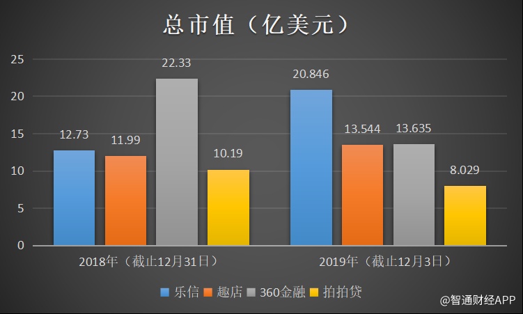 从数据上来看——从年初至今,头部平台资本市场呈现两极分化,360金融和拍拍贷市场下挫,而乐信和趣店在股价上则有较大成长,而以乐信为最:截止12月3日,乐信股价涨幅为63.7%,趣店此一数据为13.05%——如果不是经历11月19、21日两日的暴跌,则趣店涨幅也超过60%。