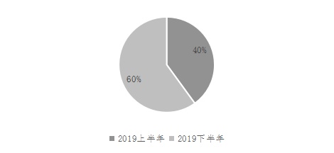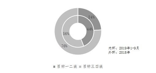 图表:2018和2019年碧桂园不同能级城市新增土地比例(按权益面积)