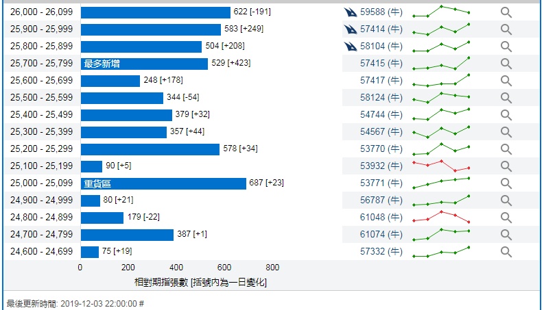 智通财经APP获悉,截至12月3日,恒指最新的牛熊街货比例54:46。瑞信恒指牛熊证街货分布图中的数据显示,熊证街货重货区和最多新增区都在27500-27599区间,该区间最新熊证数量为760张,较上一交易日增加354张。牛证街货重货区在25000-25099区间,该区间最新牛证数量为687张,比上一交易日增加23张;最多新增在25700-25799区间,较上一交易日增加423张。