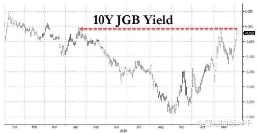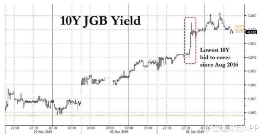 事实上,隔夜10年期日本国债收益率从0上升了0.8个基点,这是自2016年8月以来最低的10年期国债拍卖价格。