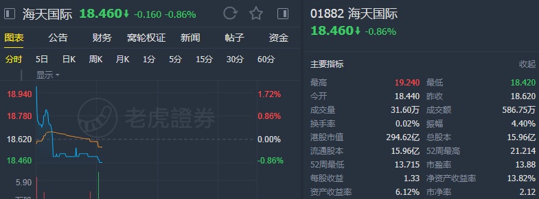 该行表示,上调海天国际2019至2021年度盈利预测2%至4%,目标价相应由21港元上调至22港元,维持“增持”评级。