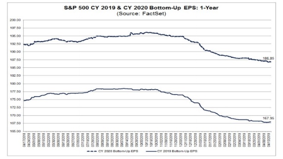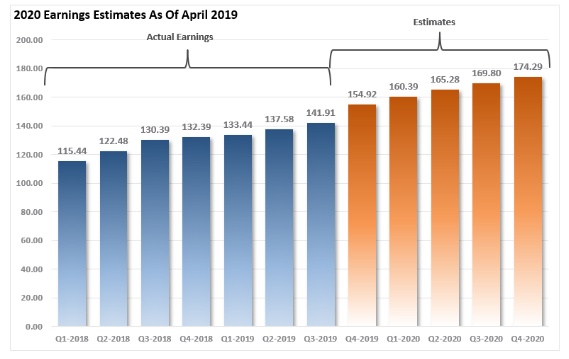 截至2019年4月,当华尔街首次发布对2020年的预测时,市场预期到明年年底盈利将增长到174.29美元。