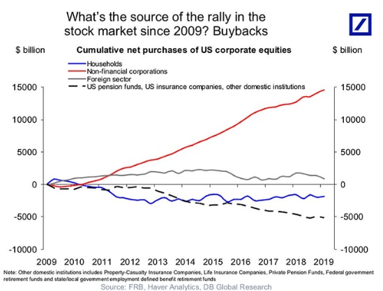 这样做的问题在于,股票回购制造了盈利的假象。而对投资者来说,真正的问题是,几乎100%的净买入股票都来自于企业回购。