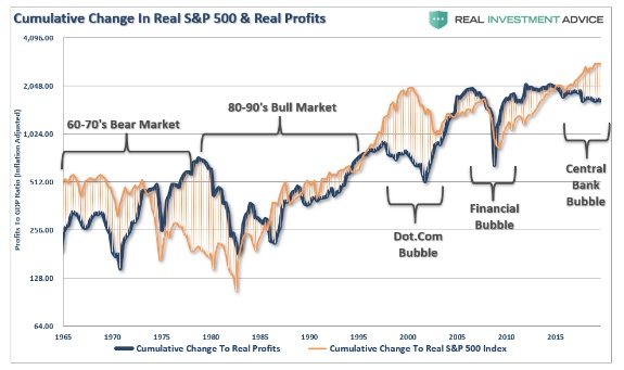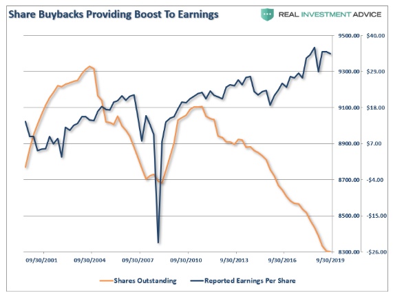 尽管标指有所上涨,但即便大幅降低税率和大规模回购股票产生的影响降低了计算每股收益时的分母,企业的营业利润和盈利还是出现了下降。