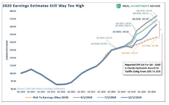 不幸的是,市场的预期数字仍然过高,且有进一步下降的空间。若关税一直维持到2020年,有可能大部分预期收入增长都会出现逆转。