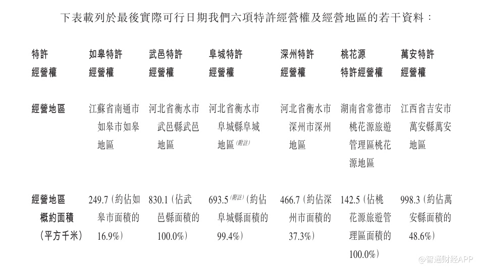 据智通财经APP了解,汇名天然气位于6个地点的6项特许经营权,分布在江苏省、河北省、江西省和湖南省,其中河北省占有3项特许经营权,其余省各占1项。特许经营地区的总面积约为3381平方千米。