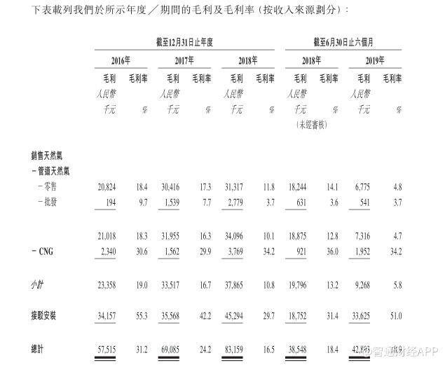 但是毛利率下降较为明显,汇名天然气的毛利率由2016年的31.2%下降至2017年的24.2%,并于2018年进一步下降至16.5%。目前,其毛利率仍在进一步下滑。