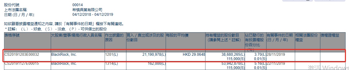 智通财经APP获悉,港交所最新资料显示,11月28日,贝莱德减持希慎兴业(00014)2119.1万股,每股作价29.0648港元,总金额约为6.16亿港元。减持后最新持股数目为3868.03万股,最新持股比例为3.70%。