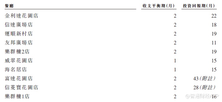同期,集团餐厅的经营利润率较为稳定,分别约为23.4%、23.4%及24%。在集团经营的餐厅中,餐厅的收支平衡期基本为2个月,投资回报期从11个月至22个月不等。
