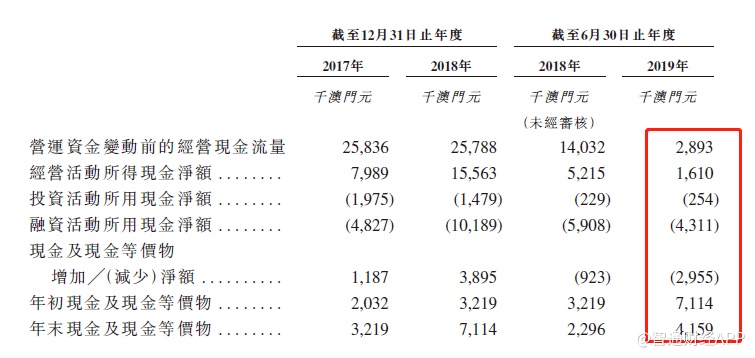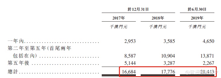 另外,集团于2017年及2018年12月31日、及2019年6月30日,分别向澳门银行借款1670万、1780万、及2140万澳门元,按浮动利率计算利息,平均实际年利率分别为2.53%、2.56%、2.88%。
