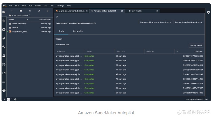 在传统的机器学习中,用户是没有办法深入了解模型的数据和模型的逻辑的。而通过Amazon(AMZN.US) SageMaker Autopilot,开发人员只需要将训练所需的数据以CSV格式上传,Autopilot便能自动以50种不同的训练模型建立机器学习任务,自动训练,最后给出可视化的结果。