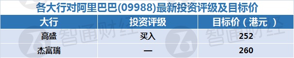 一、各大行对阿里巴巴(09988)最新投资评级及目标价