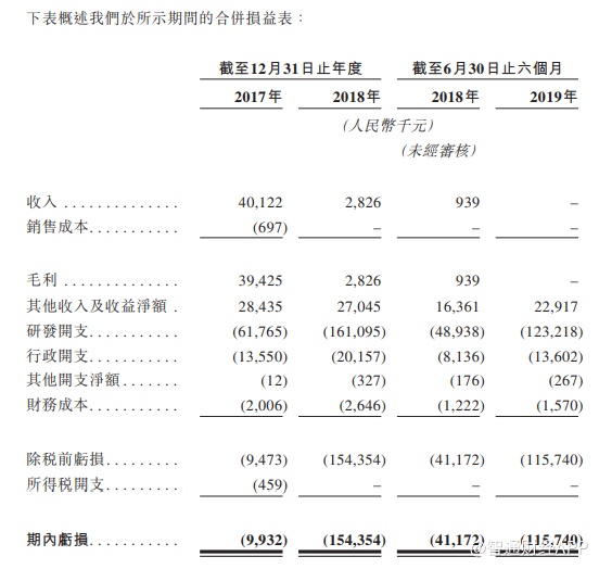 与大部分生物科技公司一样,研发活动是其业务模式的核心。截至2017年及2018年12月31日止年度以及截至2019年6月30日止六个月,研发开支分别为6176.5万元、1.61亿元、1.23亿元,占开支及成本总额的79.2%、87.4% 及88.9%。