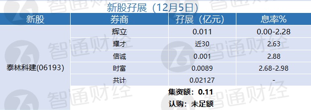 新股孖展统计 | 12月5日