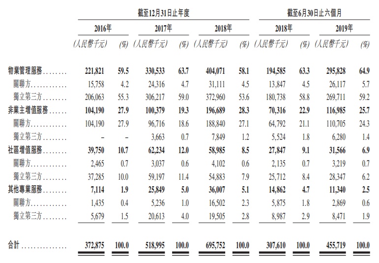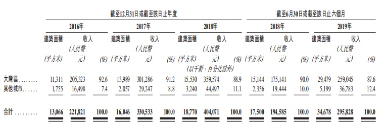 截至2019年6月30日,公司位于中国的204个在管物业管理服务项目及六个市政环卫项目中有191个位于大湾区,约占在管总建筑面积的87.7%。 截至2019年6月30日,其物业管理在管建筑面积大幅增加主要归因于2019年3月收购了广州东康(广东省一家知名物业管理及市政环卫服务供应商),令物业组合增加了约1340万平方米的物业管理在管建筑面积。