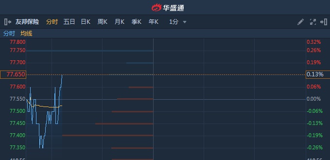 智通财经APP获悉,友邦保险(01299)盘中现3宗大手成交,每股作价介于77.5元至7.55元,共涉及629.28万股,共涉资4.88亿元。截至10时11分,涨0.13%,报价77.65港元,成交额8.684亿。