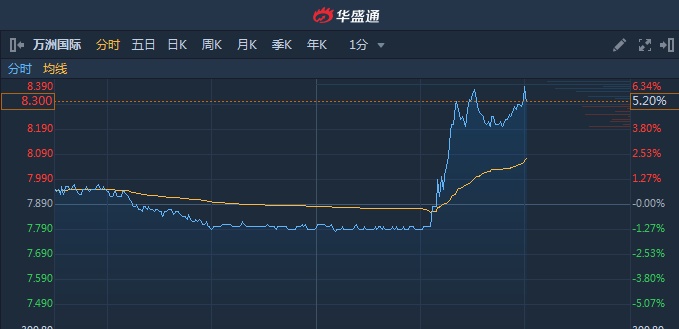 智通财经APP获悉,万洲国际(00288)午后盘中放量急升,突破多条均线,截至15时00分,涨5.2%,报价8.3港元,成交额4.971亿。