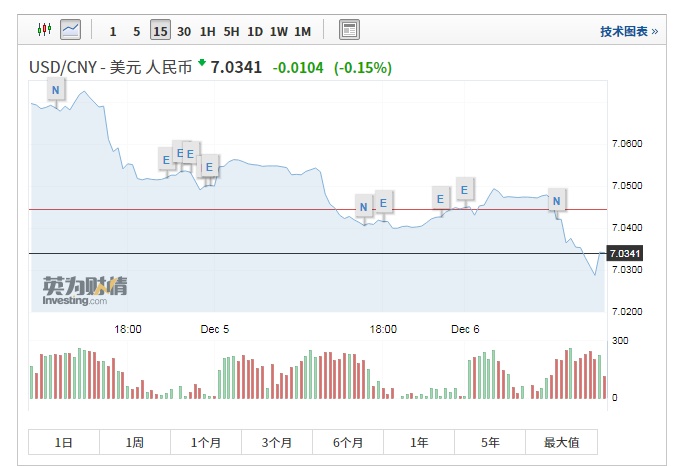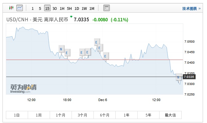 智通财经APP获悉,12月6日,人民币兑美元汇率和离岸人民币兑美元汇率盘中持续拉升,均涨逾200点。在岸人民币兑美元自日内最低点7.0515持续拉升涨至7.0280,涨幅达235点;离岸人民币兑美元自日内最低点7.0495持续拉升涨至7.0289,涨幅达206点。在岸、离岸人民币盘中双双收复7.03关口,创四日来新高。