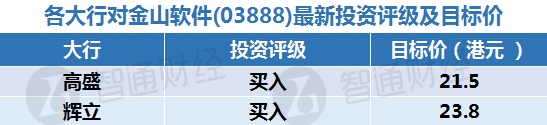 一、各大行对金山软件(03888)最新投资评级及目标价