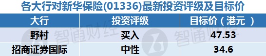 四、各大行对新华保险(01336)最新投资评级及目标价