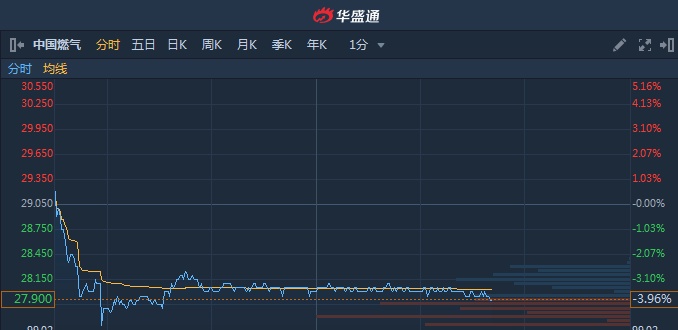 智通财经APP获悉,中国燃气(00384)遭沽空机构GMT列入高度确信沽售名单,拖累股价盘中创近半年新低。截至14时40分,跌3.96%,报价27.9港元,成交额2.825亿。