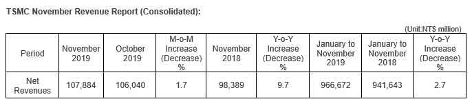 数据显示,台积电今年1至11月累计营收约为新台币9666.7亿元,同比增长2.7%。