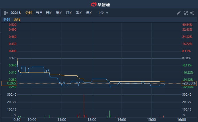 益华控股尾盘跌超30%,截至发稿,跌31.08%,报0.255港元,成交额202.81万港元,股价创历史新低。