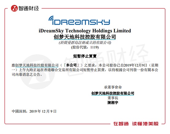 智通财经APP了解到,创梦天地科技控股于12月9日早间发布公告称,公司自12月9日起将短暂停止买卖,以待发布一份有关公司内幕消息的公告;同一时间,乐游科技控股同样发布公告表示进入短暂停牌,后续会根据香港公司收购合并守则刊发一则内幕消息公告。