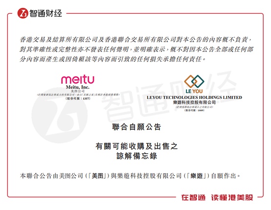 早在2019年年初,乐游科技就曾与美图公司订立过收购事项的谅解备忘录。智通财经APP了解到,乐游科技于2019年1月28日对外发布公告称,美图将按全面摊薄基准向乐游科技配发及增发最多约20%的普通股股份,用以收购乐游科技旗下全资子公司 Dreamscape Horizon Limited 30% 股份。不过公司在之后的4月24日公告表示,因交易议案未在美图股东大会上获通过,因此与美图的交易正式告吹。