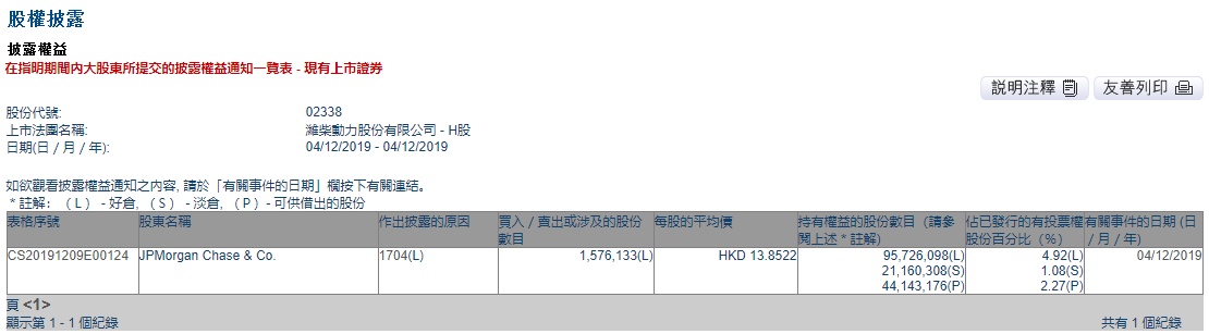 智通财经APP获悉,联交所最新资料显示,12月4日,摩根大通减持潍柴动力(02338)