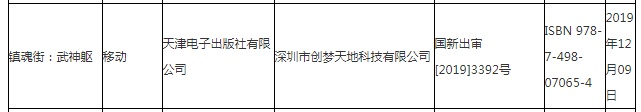 智通财经APP获悉,12月10日,原国家新闻出版广电总局官方信息显示,新一批国产游戏版号名单更新,42款游戏获批,审批时间为12月9日。其中腾讯(00700)的《我叫MT自走棋》、网易(NTES.US)的《有杀气童话2》、中手游(00302)的《魔性酷跑》、创梦天地(01119)的《镇魂街:武神躯》等游戏获得版号。
