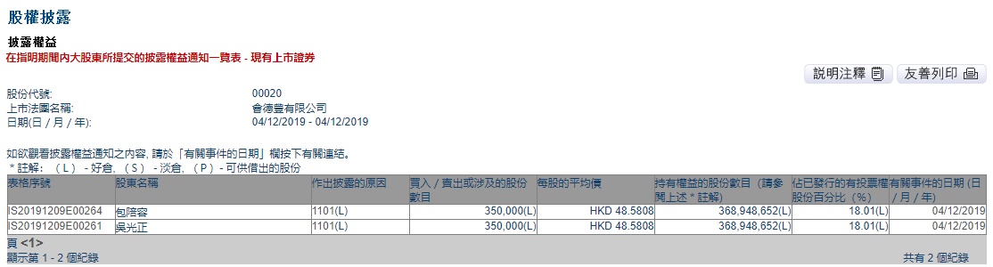智通财经APP获悉,联交所最新资料显示,12月4日,吴光正增持会德丰(00020)35万股,每股作价48.5808港元,总金额约为1700万港元。增持后最新持股数目约为3.69亿股,最新持股比例为18.01%。