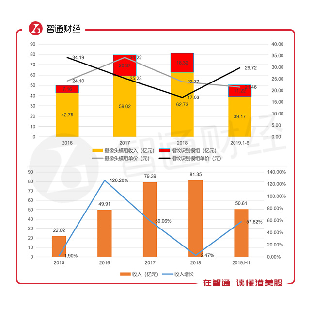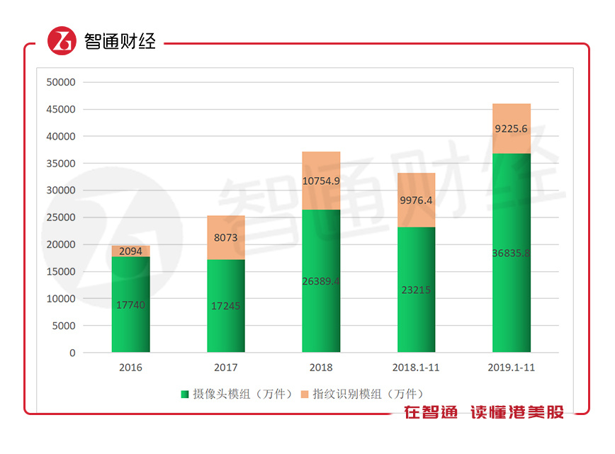 从往年看,该公司的两类产品整体保持不错的增长水平,2017/2018及2019年首11月,分别录得增长27.6%、46.7%以及38.8%,近三年,摄像头模组及指纹识别模组销量复合增长率分别为126.6%和21.97%。
