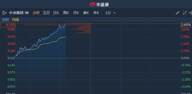 K30系列与AIoT智能新品发布会于北京召开,发布Redmi笔记本、首款智能音箱、首款路由器以及Redmi首款5G手机4款产品。截至发稿,涨3.69%,报9.55港元,成交额10.32亿港元。