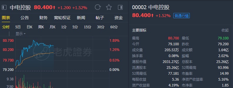 智通财经APP获悉,小摩发布报告称,维持中电(00002)“增持”投资评级,并继续预期公司今年的派息增长达3%。该行相信,电费加幅低于预期的消息已大致在市场反映出来。