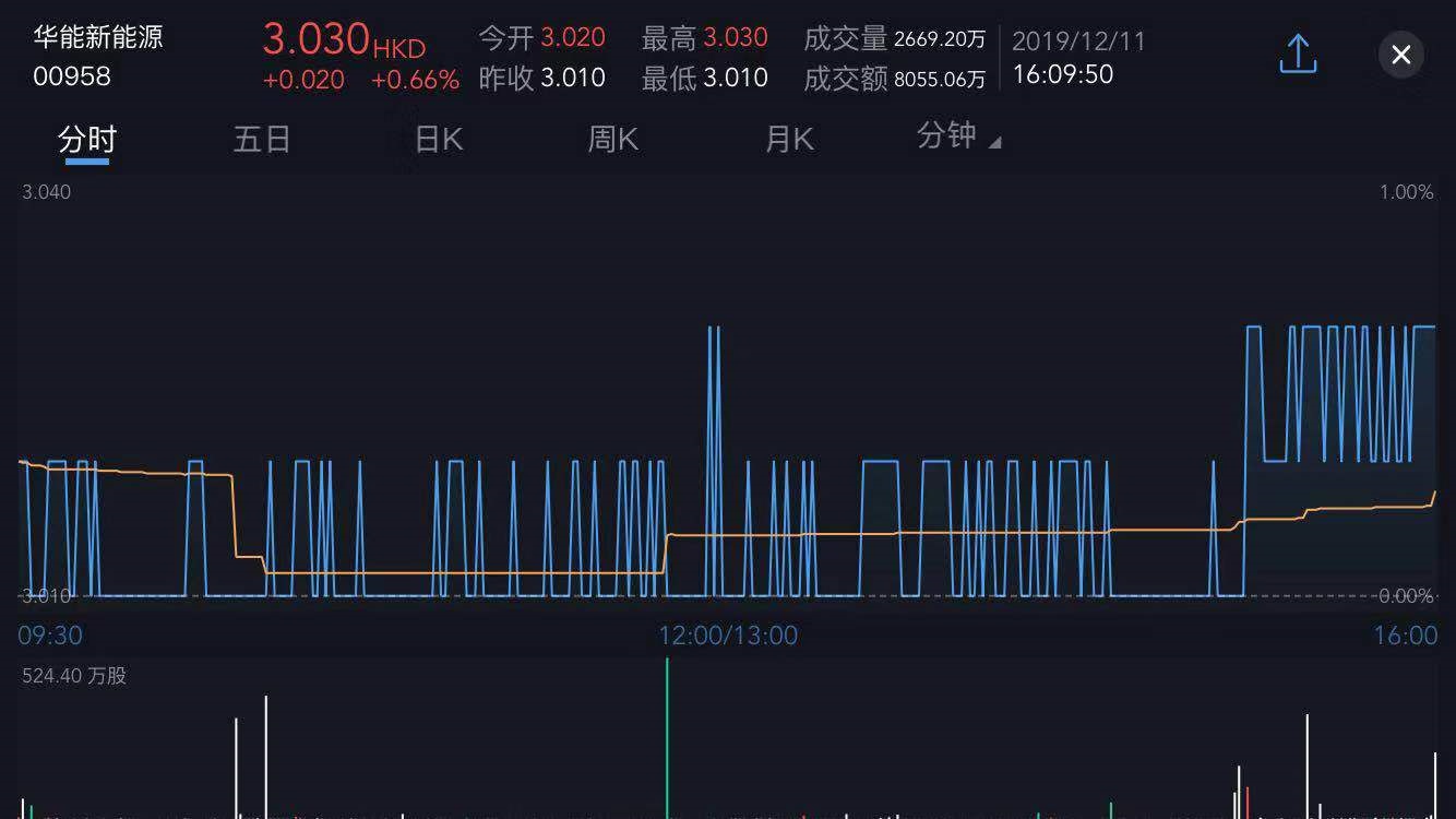截至今日收盘,华能新能源(00958)涨0.66%,报3.03港元。