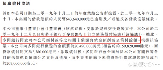 首先森美控股在10日早盘之前发布了业绩预增公告,“预期集团截至2019年12月31日止年度取得溢利不少于人民币3亿元,去年同期则取得亏损人民币9750万元”,简单概括“去年亏一亿,今年赚三亿”,原因是主要由于一份削债协议导致集团的负债大幅下降而产生不少于3.5亿港元的收益所致。