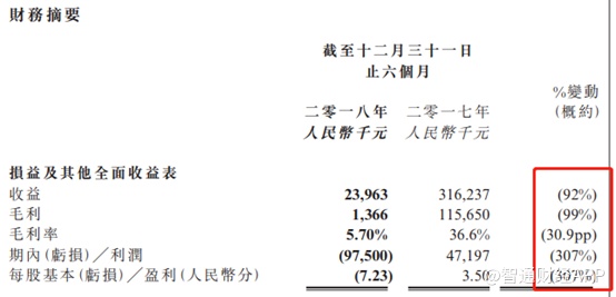 智通财经APP观察到,根据森美控股2018财年的中期业绩显示,截至2018年12月31日六个月,其收入同比下滑92%,毛利同比下滑99%,净利润由盈转亏。截至2019年6月31日的年度业绩持续恶化,甚至毛利润都从去年同期的2.3亿转至亏损1970万。