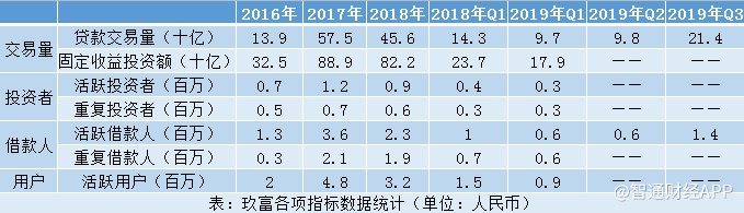 当时玖富普惠的活跃投资者多达120万,活跃借款人高达360万,一年内的贷款发放量高达575万。但在行业暴雷的负面影响以及政策的强监管之下,玖富普惠自2018年开始走下坡路,借款人数、交易规模均明显下滑。直到2019年第二季度时,玖富的贷款发放量和活跃借款人数才出现企稳。